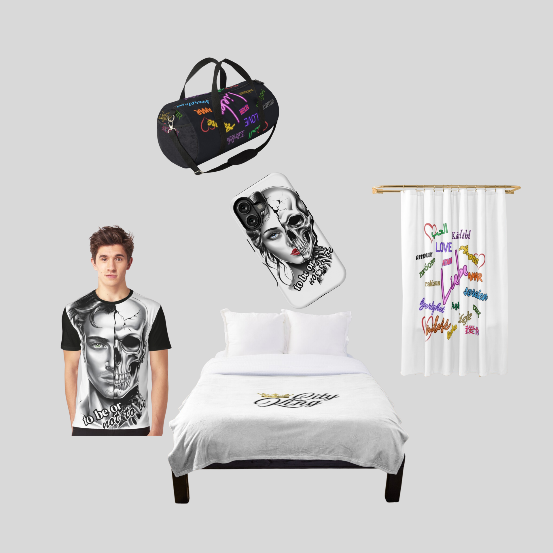 Entdecke einzigartige Designs auf T-Shirts, Taschen, Handyhüllen, Bettwäsche, Duschvorhänge und mehr. Perfekt, um deinen Alltag zu verschönern oder besondere Geschenke zu finden.